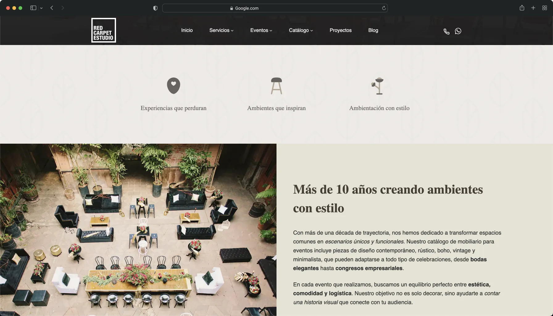 Disseny i maquetació de Red Carpet Studio, amb un estil elegant i visual premium. Navegació intuïtiva, tipografia refinada i presentació visual potent, orientada a potenciar la marca i l’experiència creativa de l’usuari. Ciutat de Mèxic.